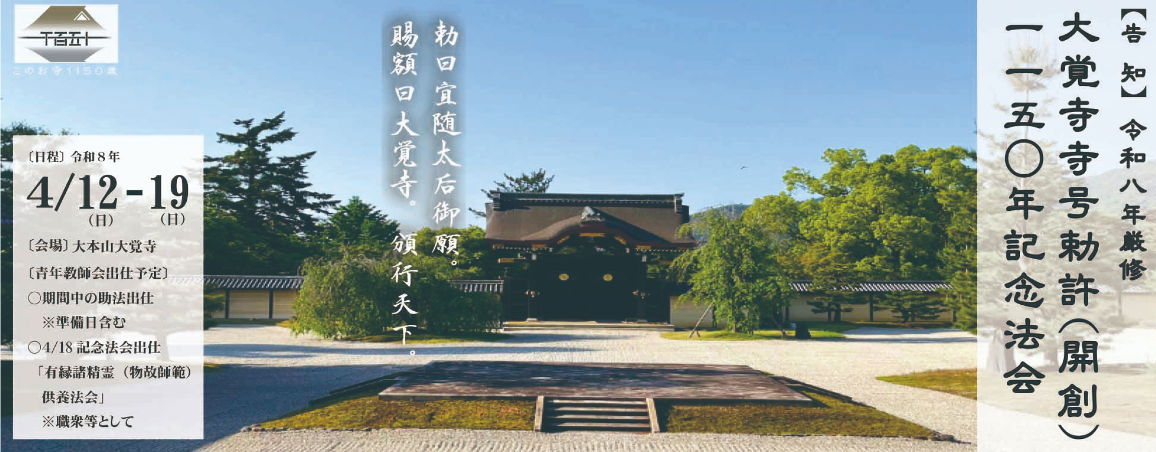 【出仕ご案内】※申込〆切R8.1.31※ 大覚寺寺号勅許(開創)1150年記念事業