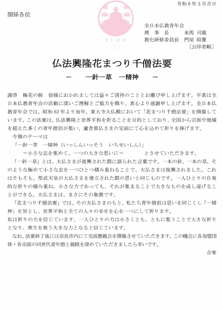 仏法興隆花まつり千僧法要 申し込みフォーム